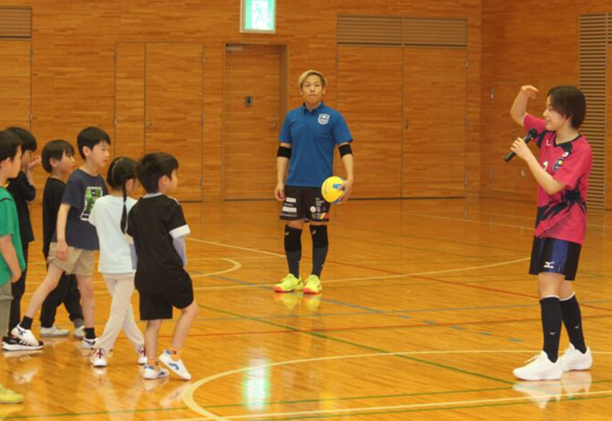 ドッジボールの選手を招いた体験教室代表選手へのインタビュー新聞制作