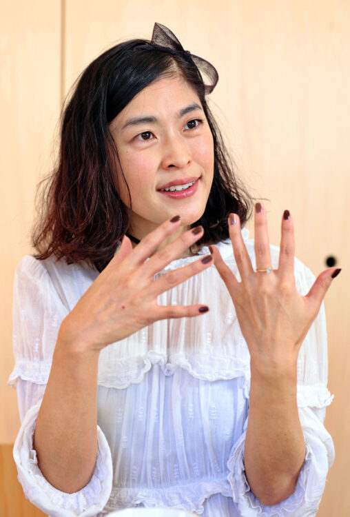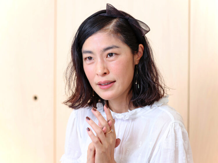 「身近な学校の生徒たちが兵器をつくっていたことに驚いた」と話す小林エリカさん=東京都渋谷区で